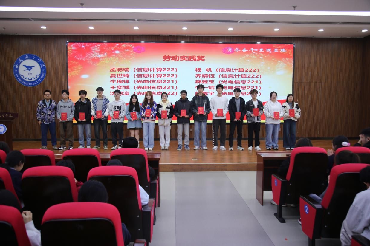 胡红亮,李扬,王向阳,张岩,曾妍依次为优秀班集体、五好学生标兵、五好学生、学业优秀奖、单科优胜奖、学业进步奖、社会实践优秀集体、劳动实践奖等获得者颁奖。随后优秀班集体(信息计算221张佳乐)、五好学生标兵(刘孔子)、活力文体队伍(羽毛球队王玉琛)、社会实践优秀先进个人(杜祎婷)分别作代表发言,表达了对学院培养的感激之情,分享了自己在学习,社会实践以及体育劳动方面的经验和心得,并表示自己将再接再厉,不断提高自我。