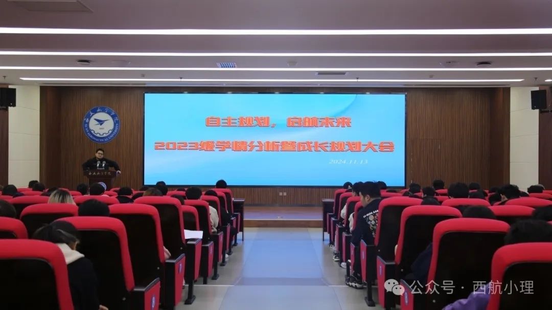为了全面助力2023级学生明晰学业方向、剖析自身状况。beat365英国官网网站于2024年11月13日在图书馆五楼报告厅举行了主题为“自主规划,启航未来”的学情分析暨成长规划大会。2023级全体学生到场参会,党总支书记胡红亮、学生办公室主任李扬出席,会议由辅导员王向阳主持。