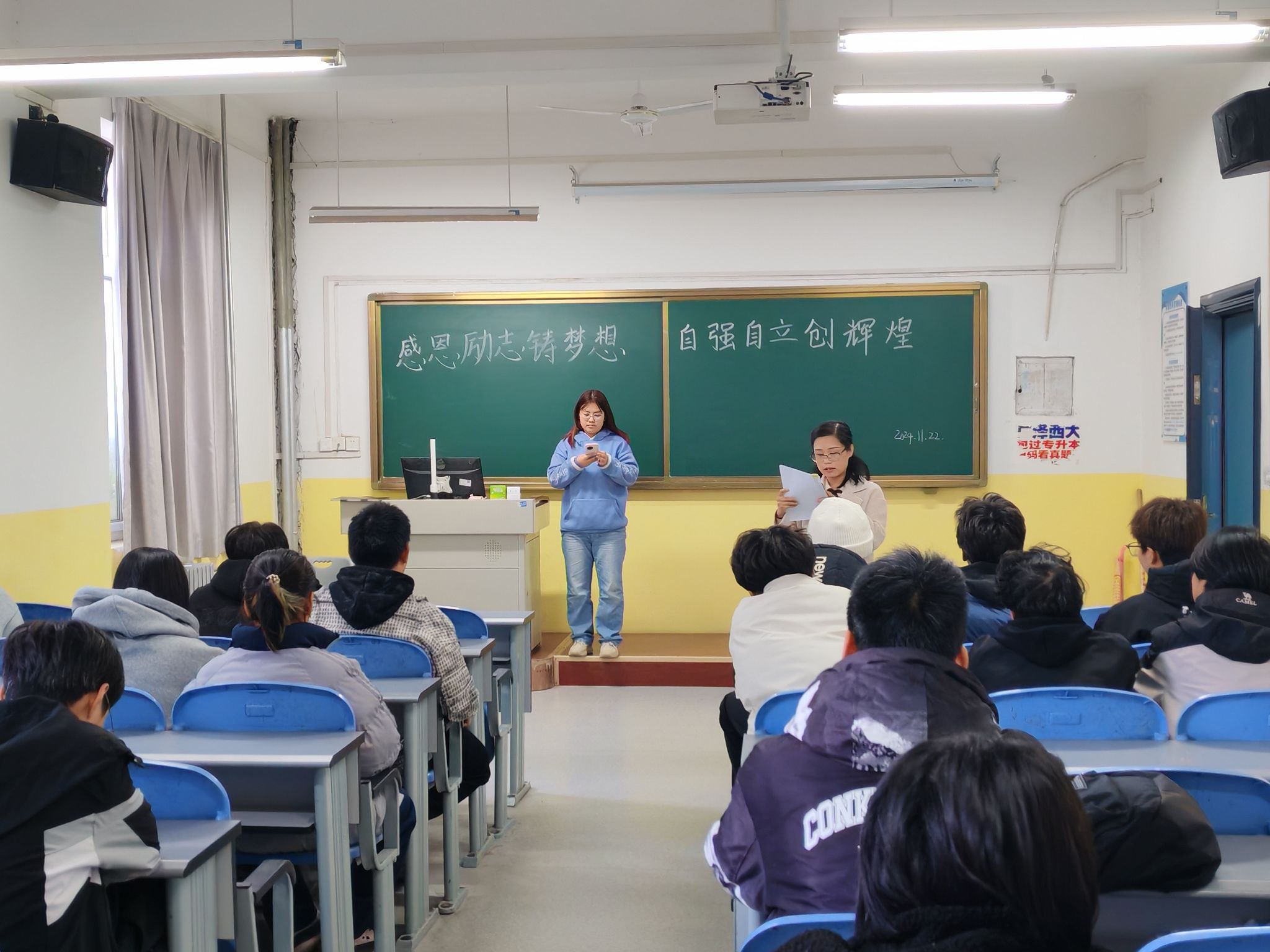 为帮助同学们树立远大梦想,弘扬积极向上的精神风貌,培养良好品德与素养。根据学生工作部(处)《关于2024年11月主题班会要点》的相关要求,在beat365英国官网网站学工办的统一组织下,各班分别开展了以“感恩励志铸梦想,自强自立创辉煌”为主题的班会。
