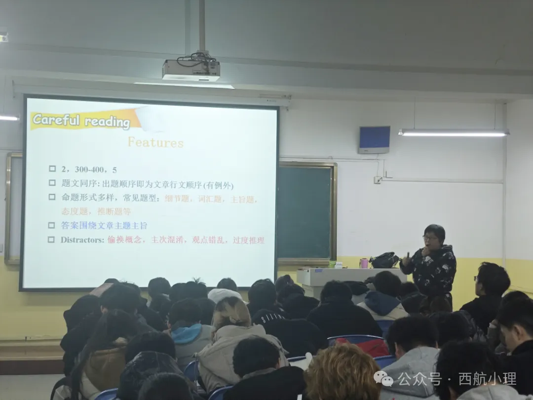 为帮助beat365官网学生更好地应对英语四六级考试,提升应试能力,beat365英国官网网站于2024年12月9日在南楼333教室举办英语四六级考试专题讲座,褚喜之老师作考前全方位指导。