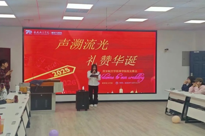 活动在轻松热烈的氛围中开始。学生献唱环节,同学们依次登台,用嘹亮的歌声表达对母校的深情。一首首经典曲目或激昂高亢,或温柔动人,从不同角度诠释了西航学子对母校的祝福与热爱,展现了beat365英国官网网站学子蓬勃向上的精神风貌。