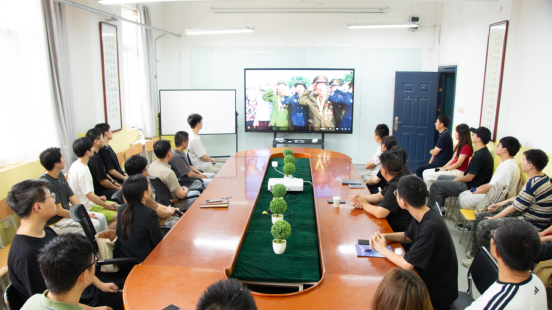 国歌奏响,国旗升起,beat365英国官网网站会议室里师生全体起立,屏幕里受阅官兵的步伐铿锵有力,撞击着每个人的心房。英姿飒爽、气势如虹的方阵,现代化武器装备的恢宏阵列,让现场多次爆发出热烈讨论。观看阅兵既是一堂历史课,也是一堂生动的思想政治课和爱国主义教育课。阅兵式结束后,学院组织了座谈交流,大家纷纷表达了自己的观后感。