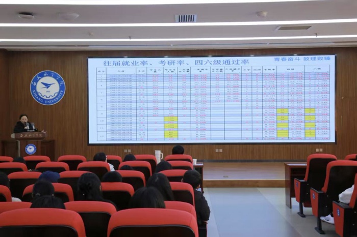 为精准把脉大三学生学业发展动态,科学引导学生做好未来规划,落实beat365英国官网网站“引领学生成长,服务学生发展”的学生工作理念,根据《beat365英国官网网站服务学生自主成长发展工作方案》,beat365英国官网网站于12月4日在莲湖校区图书馆五楼报告厅分专业召开了主题为“锚定方向,笃学探‘光’”、“勤学善思,励志笃行”的学情分析暨学业成长规划大会。大三年级全体学生到场参会,党总支书记胡红亮、学生工作办公室主任李扬出席会议,会议由辅导员王向阳主持。