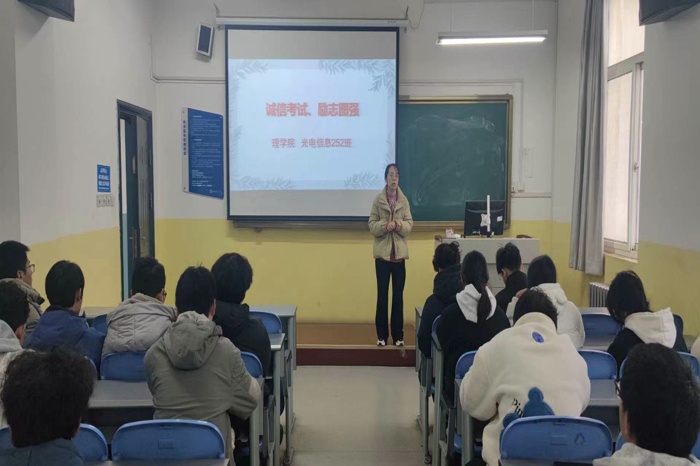 班会上,班主任讲解了《国家教育考试违规处理办法》及学校相关规章制度,警示考试作弊的严重后果,要求同学们在2025年硕士研究生考试、大学英语四六级考试及期末考试中诚信考试。全体同学在现场郑重签订了《诚信考试承诺书》,承诺在接下来的各类考试中严守纪律,杜绝违纪作弊行为,以真实成绩检验学习成果,共同维护公平、公正的考试环境。