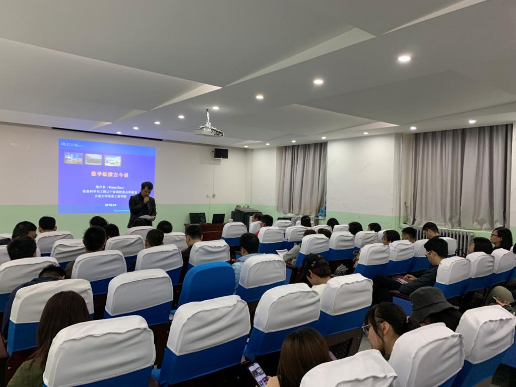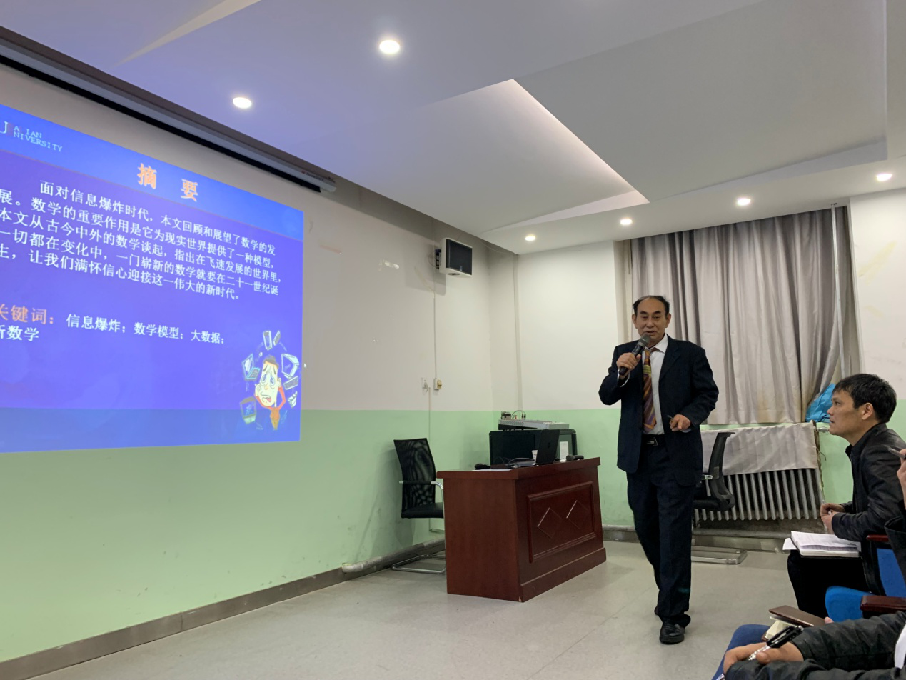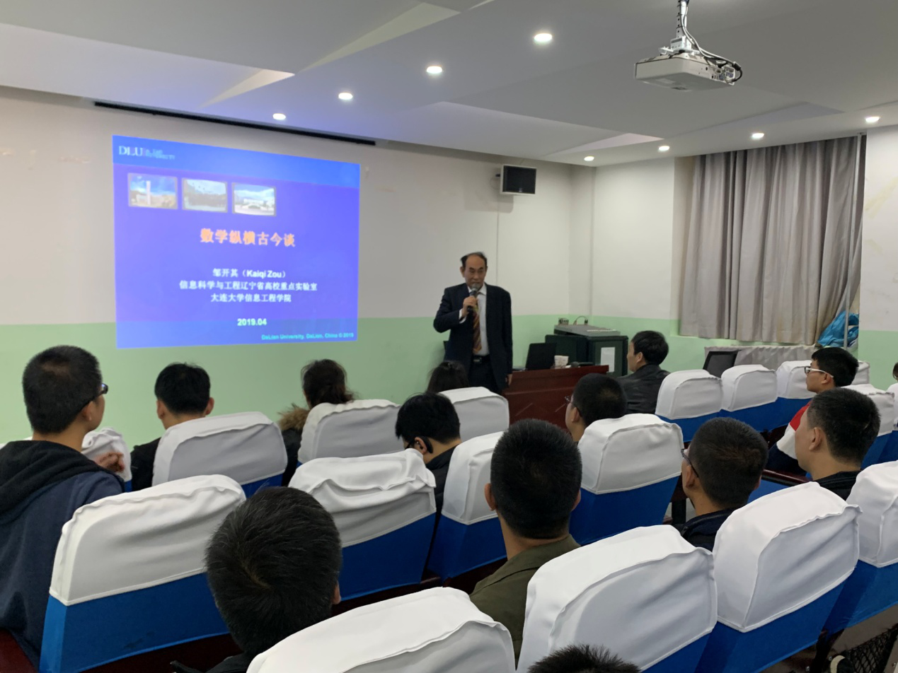 2019年4月12日下午2:30,beat365英国官网网站邀请大连大学学术梯队带头人、大连大学应用数学研究所所长邹开其教授在教学南楼108做了题为“数学纵横古今谈”的学术讲座。讲座由beat365英国官网网站院长岳忠玉主持,近百名师生参加。