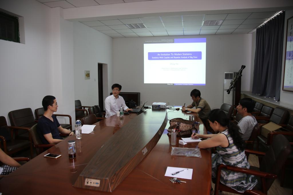 魏征教授从基于copulas的统计和大数据的贝叶斯分析两个方面对现代统计分析做了介绍,同beat365官网教师在copulas应用以及大数据处理分析等方面进行了充分讨论交流。魏征教授对beat365英国官网网站信息与计算科学专业的大数据方向及教师的大数据团队的搭建给出了中肯的建议,并表示可以在后续大数据科研和教学工作中进一步加强合作和交流。