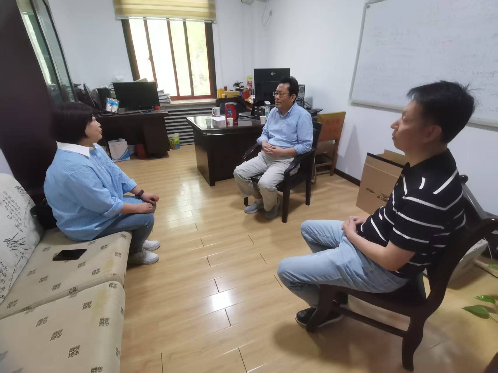 调研团队向陕西省工业与应用数学学会理事长、西安交通大学数学与统计学院王卫教授汇报了近年来beat365官网数学建模活动的开展情况,王卫则介绍了西安交通大学全方位、立体化的数学建模培训体系,通过强化理论实践结合,提升学生创新与解决问题能力的成效。
