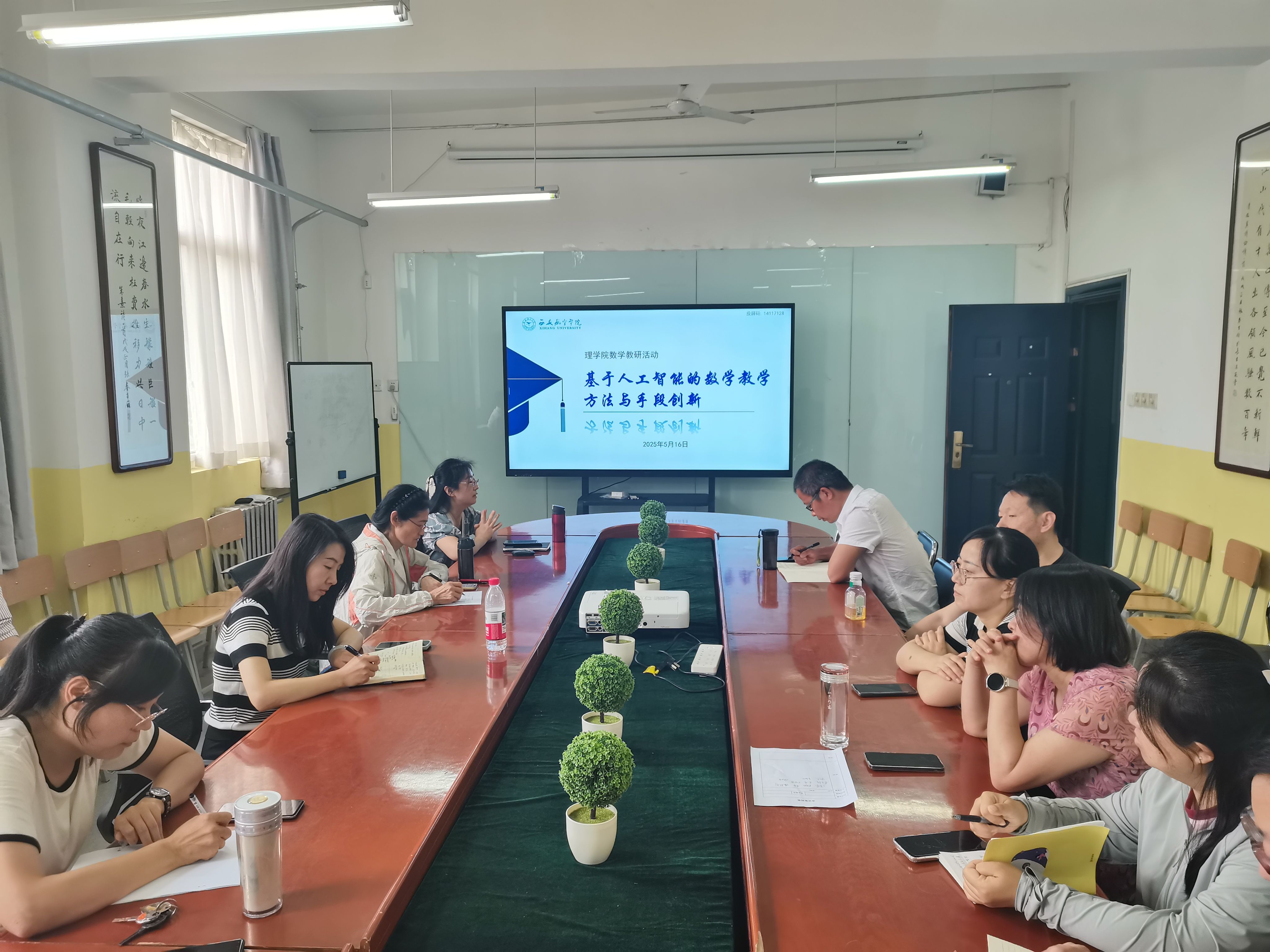 2025年5月16日下午,beat365英国官网网站数学教研室开展“基于人工智能的数学教学方法与手段创新”专题教研活动,聚焦人工智能与数学教育深度融合,探索教学方法与手段的革新路径。本次教研活动由数学教研室主任杨青主持,会议邀请了校级教学督导强蕴蕴老师,beat365英国官网网站院长助理王小梅及数学教研室全体教师参加。