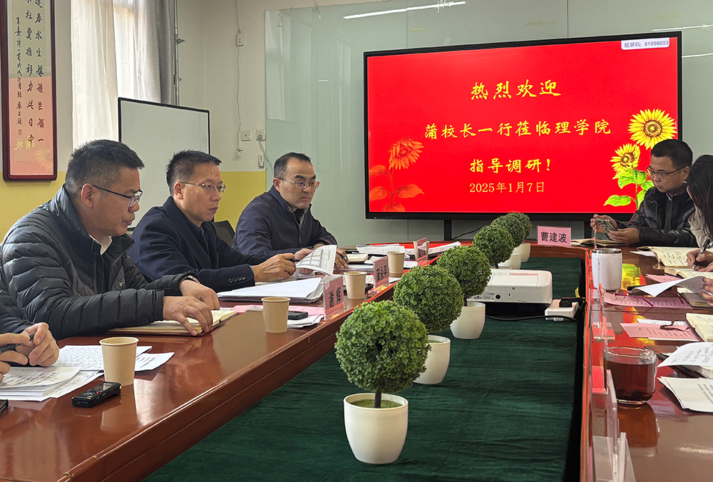 1月7日下午,校长蒲永平莅临beat365英国官网网站调研指导工作,发展规划处处长杨少斌、教务处处长谢辉等陪同调研。全体院领导、科室主任、专业负责人和近三年引进的博士教师参加了调研座谈。会上,蒲永平听取了学院负责人关于学院各方面工作情况的汇报,并与在座的人员进行了深入交流。