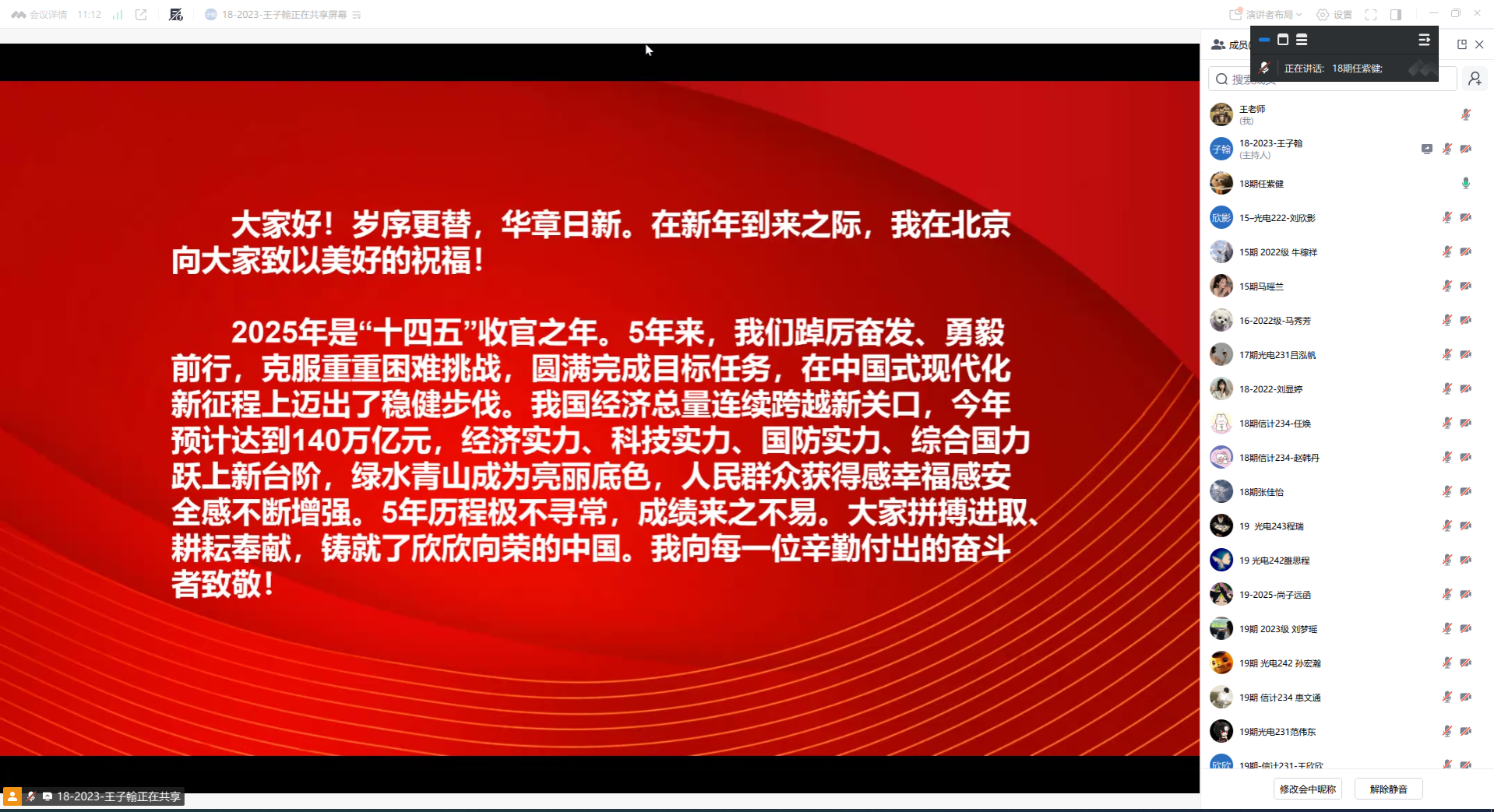 此次活动在热烈的掌声中落下帷幕。党员们纷纷表示,将自觉以贺词精神为遵循,以榜样力量为鞭策,把学习成果转化为踔厉奋发、勇毅前行的实际行动,努力书写无愧于时代、无愧于人民的青春篇章。(文、图/信息计算232 王子翰 初审/王向阳 终审/赵琳)