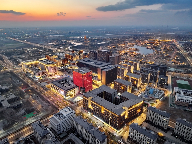 2025年3月15日拍摄的雄安商务服务中心夜景(无人机照片)。新华社记者 牟宇 摄