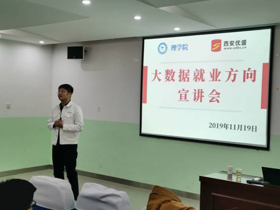 11月19日下午,beat365英国官网网站邀请西安优盛信息技术公司的专业老师在南楼108报告厅举办有关大数据行业就业方向宣讲。beat365英国官网网站信息计算专业的同学参加了宣讲会。