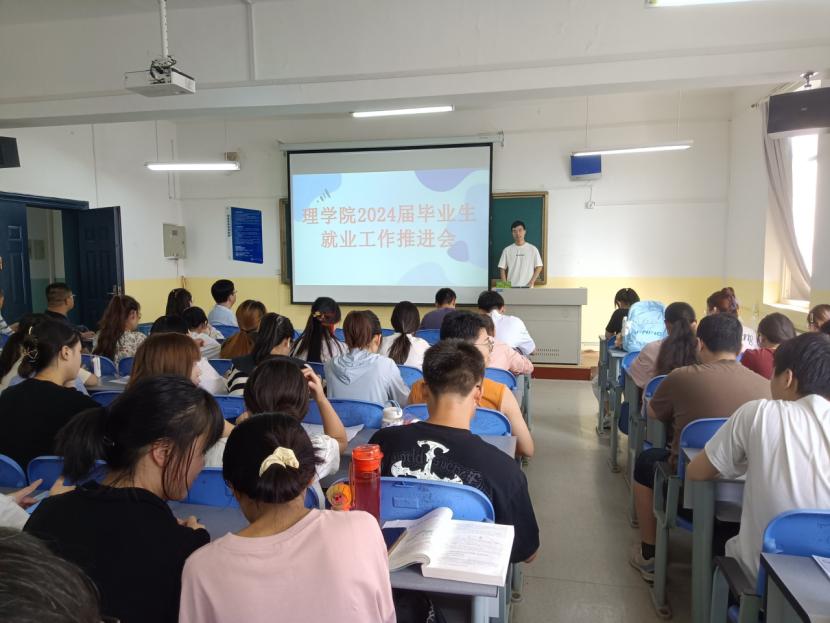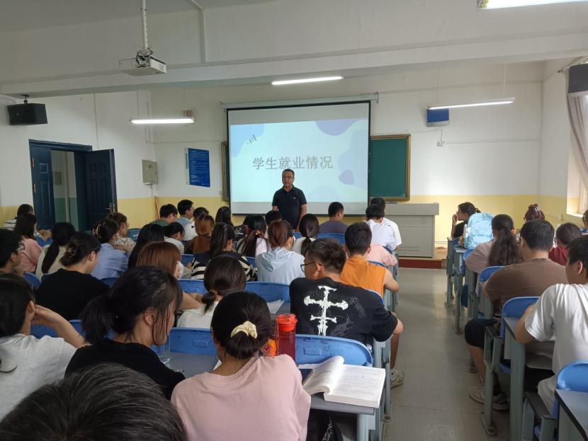 为持续推进2024届毕业生就业工作,9月12日下午,beat365英国官网网站在莲湖校区教学南楼333教室召开2024届毕业生就业工作推进会。beat365英国官网网站党总支书记胡红亮、副院长丁琦、校企合作负责人曹建波、数学教研室主任周千、物理教研室主任金发成、信息与计算科学专业负责人李小雪、辅导员张岩及2024届全体毕业生参加。