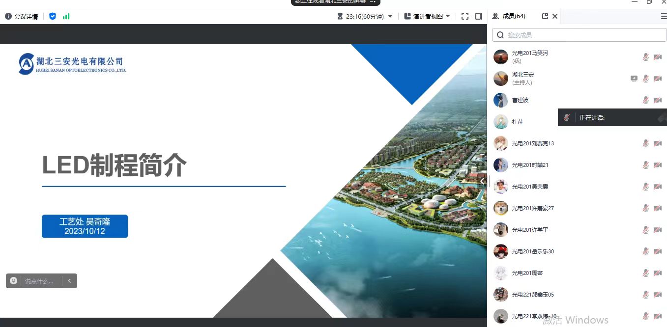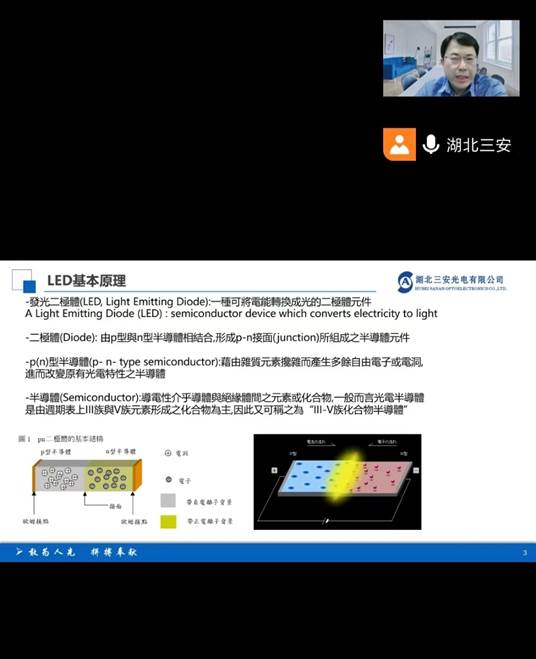 为全面深化产教融合、校企合作,实现学生的多元化学习目标。2023年10月12日,beat365英国官网网站联合教师发展中心在线上平台举办了“LED制成分享”讲座,讲座由湖北三安光电有限公司(以下简称三安光电)技术副总吴奇隆主讲,beat365英国官网网站院长李小光主持。
