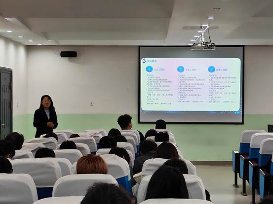 湖北三安光电股份有限公司是国家发改委批准的“国家技术产业化示范工程”企业,产品性能指标居国际领先水平。本次宣讲会以“‘芯’生代,‘耀’未来”为宣讲主题,公司人力资源经理通过短视频、PPT等方式向大家介绍了公司的发展现状、薪酬福利、晋升方式和岗位要求等,并对同学们提出的问题进行解答,对学生应聘岗位的选择进行了指导。会后,同学们积极投递简历,认真对待招聘环节初试和复试的层层筛选。