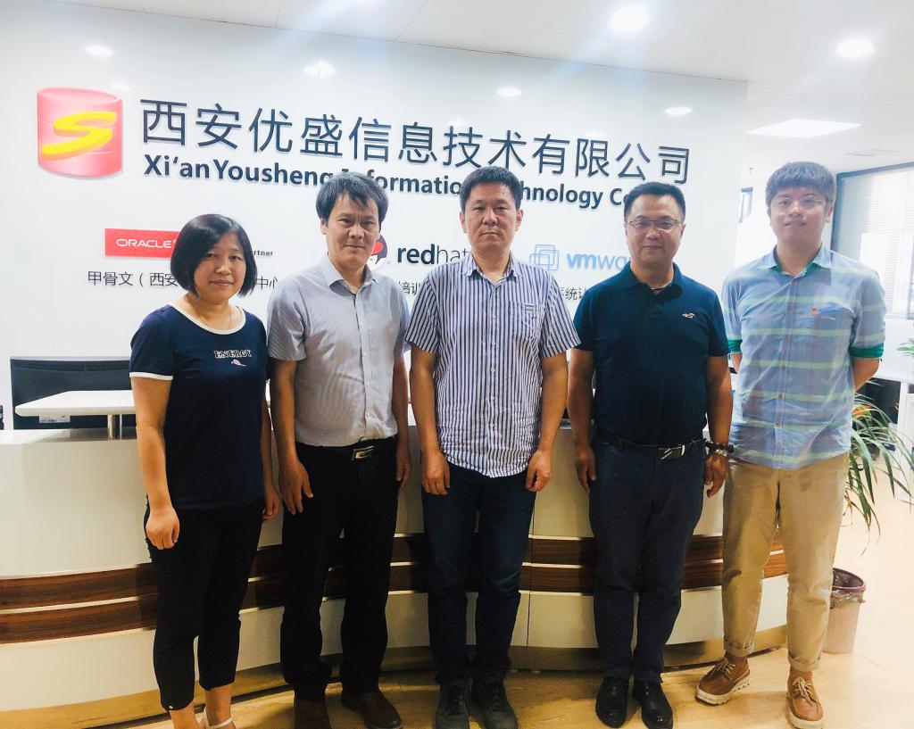 在西安优胜信息技术有限公司总经理室,岳忠玉院长与雷建军总经理亲切友好的会谈。期间,雷总经理介绍西安优胜信息技术有限公司主营业务和该公司大数据相关产业市场整体布局情况,并希望与beat365英国官网网站开展多方面的合作。岳忠玉院长表达了beat365英国官网网站对促进校企合作的知名企业表示欢迎的美好愿望,并切实脚踏实地做好合作等相关事宜与雷总经理进行了深入的交谈。交谈期间,与西安优胜信息技术有限公司签订了校企合作框架协议。