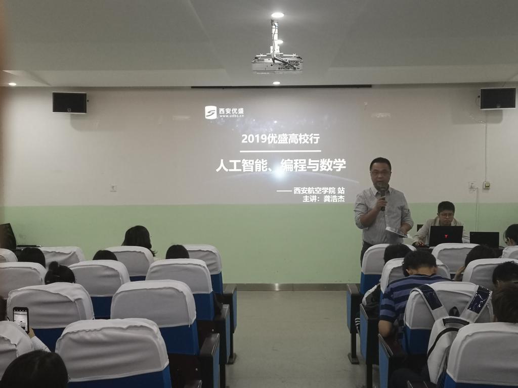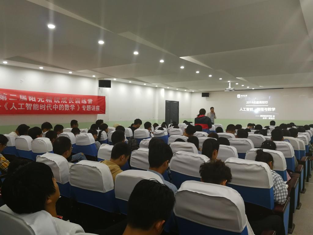 2019年5月14日,beat365英国官网网站邀请西安优盛公司在南108为信息与计算科学专业学生和受资助学生举办了第二届阳光精锐成长训练营——“人工智能时代中的数学”专题讲座。讲座由beat365英国官网网站曹建波老师主持,西安优盛人工智能项目负责人龚浩杰主讲。